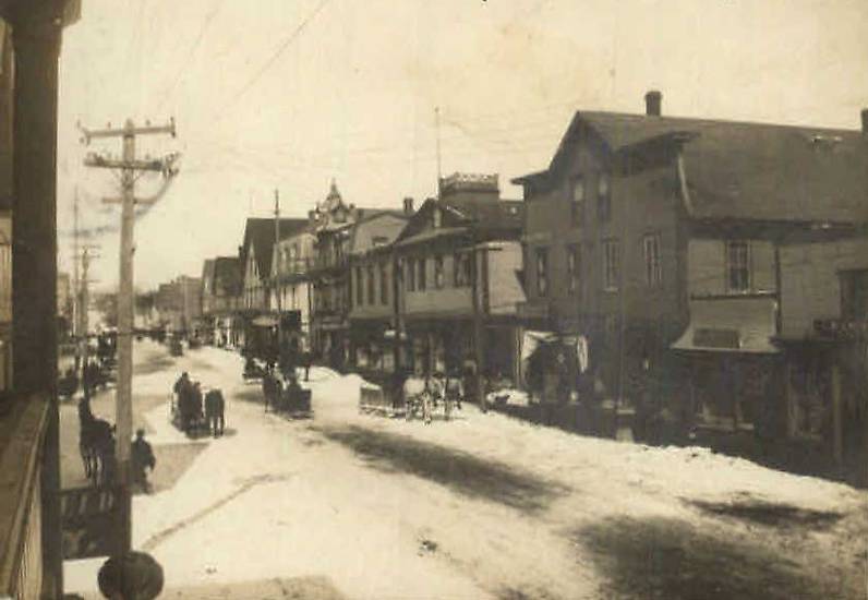 Photo taken around 1910 in this Maine community. The brackets supported individual lines to customers.