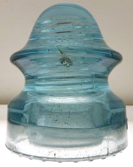 Pic one showing what looks like a small flake of metal in the upper wire groove. Finding and McL's with stuff in glass is pretty scarce. . . very high quality insulators.