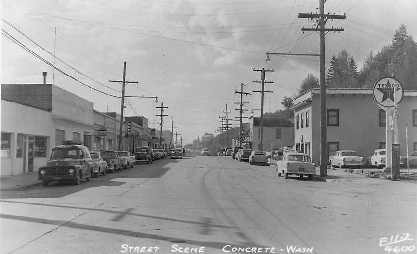 Concrete, WA c1956, Old Cars, Pole Lines, Signs, Downtown 50s Americana