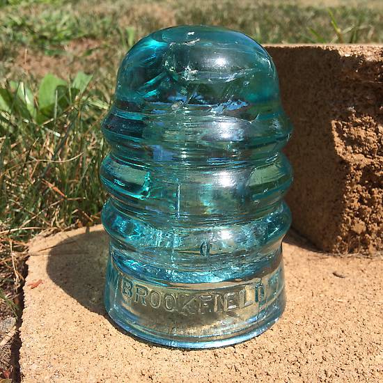 This insulator is in good overall condition, it does have a very shallow cooling crack that runs through the wire grooves up into the base. There is no glass missing and no bruising associated with this. The glass is clean and shiny. There are a few small flea bites scattered around the insulator but it displays very well from all sides. Asking $20.00 plus shipping. Payment by check, money order, or PayPal the non fee way. |