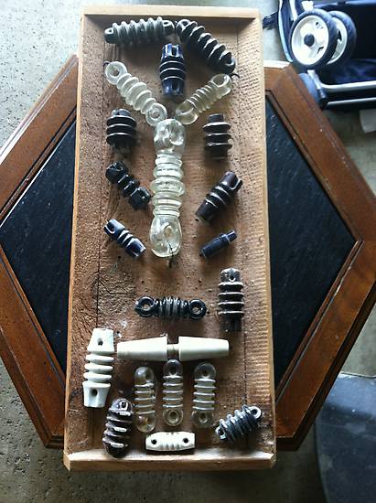 Went back to same sale I got the insulators from last week and got these radio strains. The one in the middle below the big clear one is a green black glass.