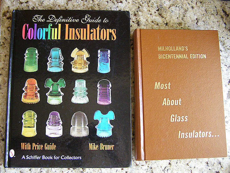 To the left is the full color Bruner book full of rare insulators from several renowned collections. A must have for every collector. Good used condition and signed by the author. $25, plus actual shipping cost. To the right is Milholland's 4th Revision in excellent used condition. Signed by Evelyn Milholland to the previous owner. $20, plus actual shipping cost. |