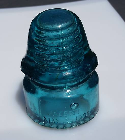 CD 134 Patent 1871 [055] (F-Skirt) PATENT/DEC. 19. 1871 (R-Skirt) PATENT/MÂY 2 1893 {Note 'A' in 'MAY' is missing bar} SDP. Looks Hemi Blue to me. Picture taken in full noon sun. This is apparently a tough variant of the 1871 Patent date script embossed 134. VNM - tiny upper wiregroove flake and only one slightly nicked drip point. Price guide says, now USD plus shipping. Thanks for looking. |