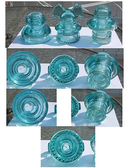 Here's a nice Hemingray Ice Aqua Trio a CD 281 No 1 High Voltage triple Petticoat, CD 257 Mickey, and a hard to find CD 196 HG Co Tramp, see pics for condition $100.00 plus 15.00 shipping PayPal gift, cashiers check or MO.