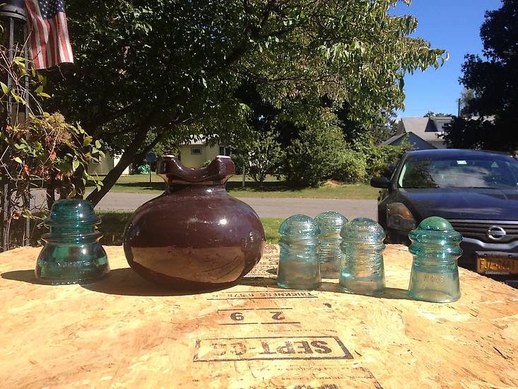 All the insulators came from the flea market I attend on Sundays. Not much to brag about. Although I can't believe I found my forth No Mame CD 106 for the summer. Knew the brown fig bowl was up the street past the flea market because I saw it about three weeks ago. Don't really collect mud but figured one doesn't see them everyday so I may as well grab it just in case someone else here at Icon may be shopping for one. |