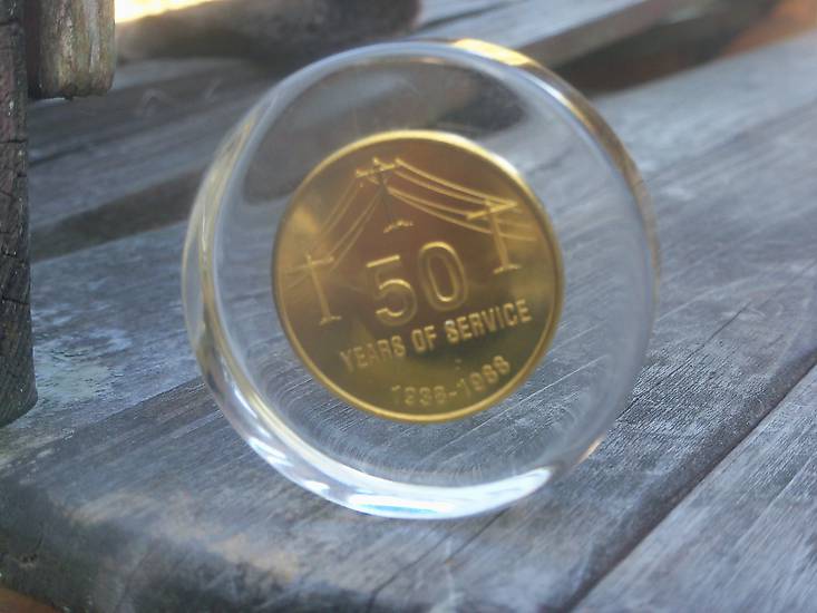 got this at the same flea-market where I got the rotary phone. First picture shows the (front ?) of the medal, coin, or maybe paper weight. Don't know if it was given to all employees or maybe just a few. The date 1938 is the start up date for the company. I found out that they have an office in Clarksville Tennessee and tomorrow I'm going to give them a call and see if anyone there can help. Second pictures shows the logo as well as the counties served. If you have any info on this piece please share with ICON. |