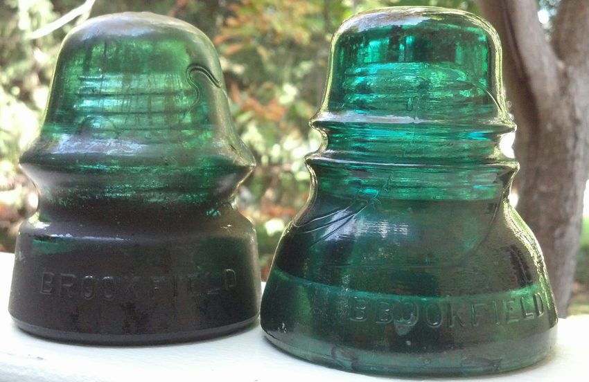 Found these two at an antique store out about for a ride . I didn't have my glasses "eyes" to see them at the time I found them . When I arrived home to look I noticed the 152 is spelled "BBOOKFIELD" . Not sure but the other might be a 162.3?? that one has a #8 on the dome and some nice size bubbles above the embossing . Needs to be cleaned to see better !!! |