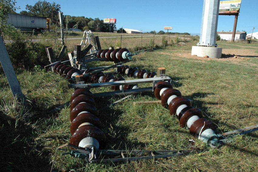 Driven past this power line tower many times and never stopped to take photos of the switches because it was a it will be there next time. Finally it wasn't and I was caught off guard. Stopped and found that 3 of the 6 switches were left on the ground. After talking to the crews and working out a date to remove the 3 remaining switches it was a matter of taking them apart. Seen here a few already broken from the removal. |