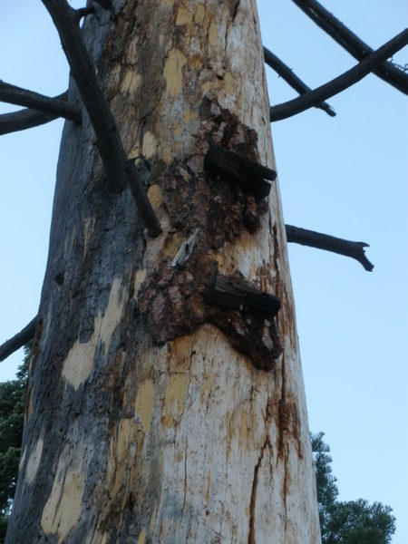 The line builders used short pieces of crossarm nailed to the tree, probably a bit stronger than a standard side peg.