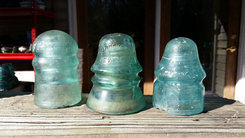A lady responded to my ad this weekend and told me she had about 30 insulators that came with a bunch of stuff she bought at a local auction. Nothing horribly rare, and a lot of damage, but some interesting pieces. These three old soldiers have had a hard life. On the left is a CD 126 [190] with the backwards "s" in St. Middle is a CD 151 [020] with a big 2 on the crown...might be the Jade Aqua Milk variety, I can see some swirls in it. Right is a CD 133 [240] "Brookfild" with a backwards 3 on the crown and a huge slice off the skirt. |