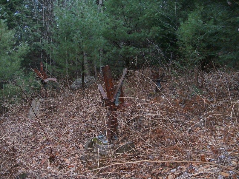 I try and avoid holiday gatherings at all costs, though I do drop in later on and chat a bit with immediate family. So today I went to New England. Started on an abandoned line that I picked up with satellite imaging and thought to be c. 1915. Here's what's left of a 4-leg steel tower at the start of the line. |