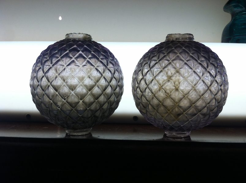 Picked up these lightning rod balls at a flea market a couple weeks ago. 2 purple quilted, 2 wmg Nationals, BMG Hawkeye, 7 wmg, a green tail weather vane and a tail with the glass missing