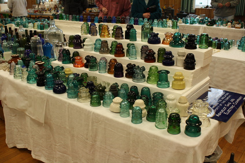Here's a shot of Kevin's Johnson's table. Cool Ashuelot Gas sign on the right side. Kevin had a nice selection of insulators and bottles. Many thanks to Kevin for his hard work in the advertising department of the Pole Cats.