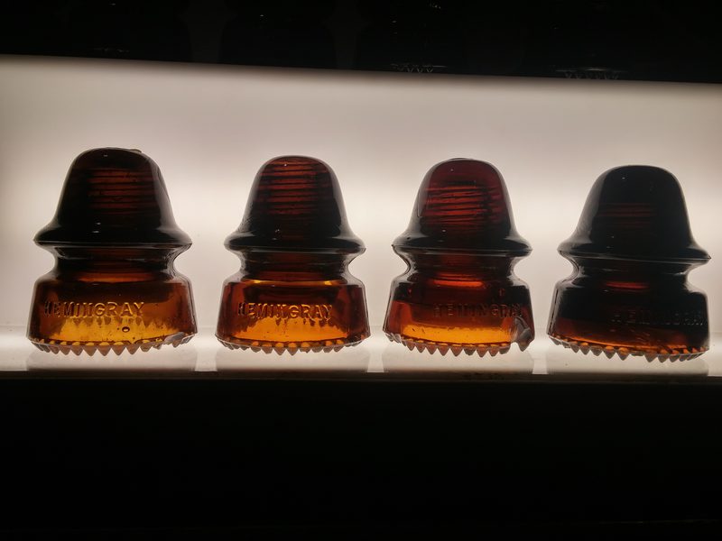 All HEMINGRAY No 19s various shades of Amber. All have drip damage, some have base chips, but these are good pieces. The domes and wire grooves are all in tact, all display well from at least one side. Priced below(way below) book at $130 shipped now 120 shipped, 12.50 of that is shipping! Come on folks! |