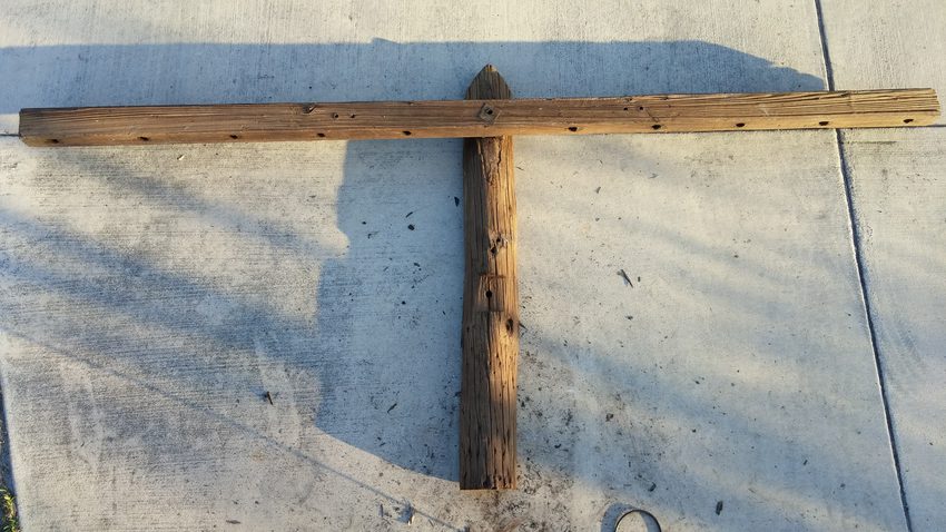 Here they are cleaned up. Although this line had up to 5 crossarms, this pole piece only has the top two gains cut in. The bolt for the second crossarm was where the bottom is cut, for whatever reason it had been moved down. The second gain was never used, notice the lack of a brace hole below it. I trimmed the end of the pole and cut it in half with a chainsaw. I'm going to hang it on my wall with the other crossarm I've recovered to make an even better display! Oh and I need 10 wooden pins to go in those holes if anyone has some to pass along ;-) [id=454941761] and the next few pictures after to see the display mounted! |