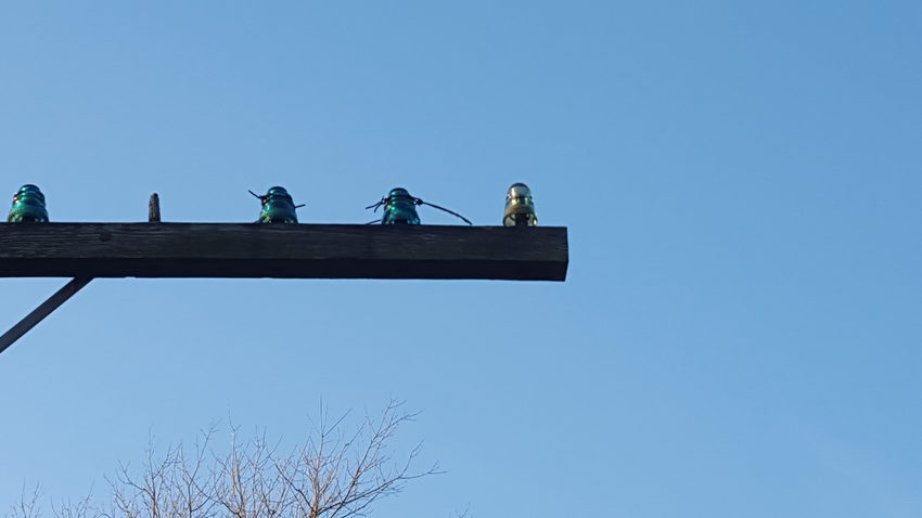 This single arm pole still held something in the air all these years. Just a few lucky guys like us to come along and see this beauty. At first we couldn't tell exactly what it was. H.G. Petticoat? Light "B" beehive? Nope