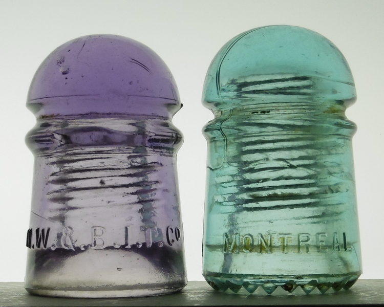 In the height of 2015's altogether-too-short summer, I was emailed by the daughter of an olde time telephone lineman here in S.W. Ontario about a pile of insulators her dad had and was hoping to unload. He had kept them from his years of service in the St. Mary's, Ontario area and had had them stowed away in the basement for some 40 years or so. Despite his interests in collecting the things as a younger man, his perception of them had gradually turned from interesting light catchers for his window, to cumbersome dust-catchers for a pile in his garage. Nothing more could be done than expend them to the next hopelessly addicted collector to come along. I just so happened to have been lucky enough to catch wind of his predicament. There are certain pieces one expects to find here in S.W. Ontario when called about such an accumulation. Brookfield, Diamond and B.T.C. CD 102s, Brookfield and Hemingray tolls, Hemingray 106s, etc, etc. Maybe even an MLOD unembossed 102 or two for good measure. What one does NOT expect to find is a telephone pony so far from its indigenous land that it boggles ones mind. I could see in the photos that were sent to me of the group, that there were some purple CD 102s in the pile, but I wouldn't have dared to imagine there was an N.W. & B.I.T.Co. in a gorgeous light purple mixed in there. After I had gone through them all and had found the N.W. & B.I.T.Co., some follow-up questioning was in order. After an hour-long phone conversation, I wasn't any closer to figuring out how it may have come to Ontario. He indicated that all of the insulators he owned had originated from the area around where he had worked. He had often brought home a scattered couple or a box full of glass from a job when there was something out of the ordinary, or something he liked - something that sparkled the right way despite a sooty carapace. He said he had given a lot away over the years, but none that he could recall had come from anywhere apart from his own work. I was stumped. What the heck was this Vancouver piece doing here in flat S.W. Ontario, some 3000 km from the closest place it seems it could sensibly have originated from? An interesting tidbit about these N.W. & B.I.T.Co. CD 102s that many on ICON may not know: some of these have been found in S.W. Ontario before this one. A scattered few stories over the years - an anecdote here, a rumour there - dating back as far as the 1970s-1980s all substantiate that something in the area of a dozen to a dozen and a half or so of these have been found in the province. One story traces back to another lineman who was once an active collector here in Ontario. This collector claims to have found several of these, all in a similar light purple shade, still adorning an active telephone pole in the London area. At least a few of these are still present in Ontario collections today, with provenance attached. The two pieces shown here were keepers from the group I picked up last summer. I had never before found a [030] SDP Montreal CD 102 in my years of collecting, so that was a welcome piece. As a testament to the occurrence of N.W. & B.I.T.Co. CD 102s in Ontario, this is actually the second one I've found up to this point: I turned up another in a London, Ontario collection in the summer of 2014. It was also part of a hoard assembled by a long-retired Bell lineman. |