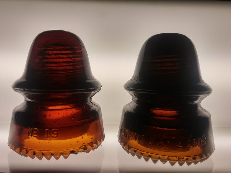 1)HEMINGRAY no 19, dark orange amber, base chip and drip damage, displays nicely from rear. $55 shipped 2)HEMINGRAY/patent date, root beer amber, base chip drip damage, displays well from the front $45 shipped Or take both for $75 shipped to your door. |