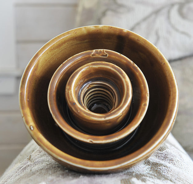 Nice fawn colored U-926A with some light brown glaze runs and blonde highlights. In perfect shape but the embossing is weak and limited. Sorry about the poor pictures but the glaze is very bright on the insulator and my camera won't focus correctly. How about $10.00 plus actual postage. |