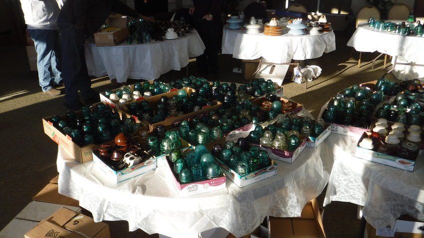 Some of the beautiful insulators for auction at the meet. Many commons but some sleepers inside those boxes.