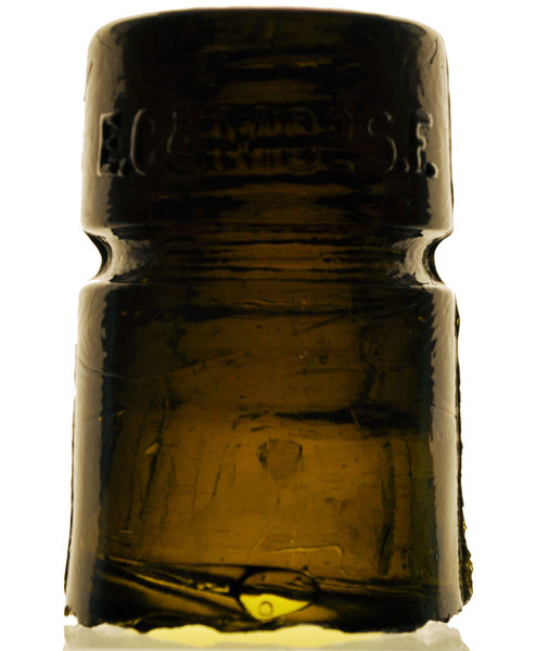 Offered for sale today, a near mint yellow olive amber EC&M Co. S.F. CD 123 insulator -- a "B" mold. Nice swirl start at the base, nice bubble in front, heavy mold lines and thick button on the rear skirt, nice fingerprint swirling on the glass surface as well. I would say it probably leans a little more amber than olive and it is see-through enough for excellent backlighted display. The delicate, sharp, beveled base has the usual roughness with a couple shallow flakes -- one 1 1/2 inches in length, the other less than an inch -- well known to have been a part of the mold removal process, and sounds much worse than it is. Were it not for the rough base, this piece would be VVNM. In my second photo, I've included a base shot so you can see for yourself. Over the years as these have gotten swallowed up into collections, fewer and fewer of them will be offered, and often when they are, it will be in auctions where you'll be competing for them and you know what that means. A western color classic! Yours today for $1,999 shipped. First email takes it. NOW $1,775 SHIPPED. |