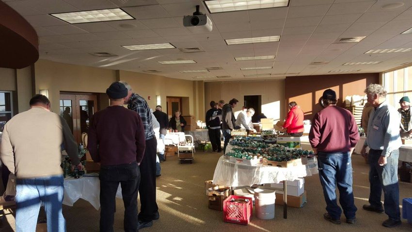 Another picture of the swap meet setup. This one shows the auction tables as they are starting to fill up.