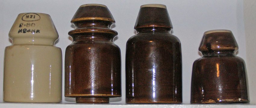 Here are four less common pieces made by NZI (New Zealand Insulators) as follows: (Actual postage additional) U-1145 Inkstamped NZI in a circle -- good condition -- $8 U-1569 N.Z.I. incuse on top -- good condition -- $15 U-tbd N.Z.I. incuse on top -- good condition -- $15 (unusual as no extended skirt!) U-1408 7Z on top -- good condition -- $12 (SOLD) |