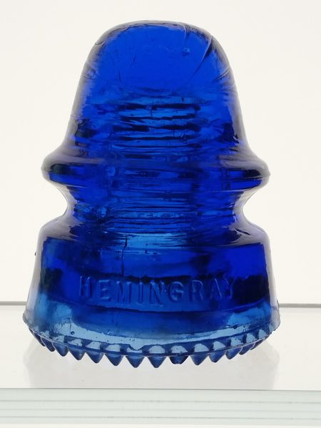 Glowing peacock cobalt, dark and rich. A piece that demands attention. Embossed Hemingray on the front and No.19 on the back. What an outstanding insulator! Four flaked drips. No other damage. First email owns this beauty for $350 shipped to the lower 48. Changed my mind, again. $325 ! It's the condition and intense color. PayPal no fee gets it fast. Check okay, but may have to clear. |