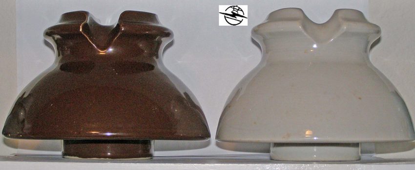Here are two power insulators that are similar to earlier US styles but do not have a U number assigned yet. Both are in good condition and have ink stamp markings as follows: Brown glaze with a logo of a large OC with a lighting bolt / 1983 / some Chinese characters White glaze with a blue inkstamp as shown in the picture figure $10 plus actual shipping or $23.45 shipped in the US |