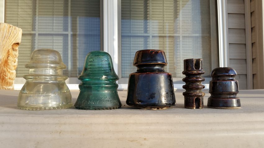 Hemingray 42, HG Co 151 [140], Pittsburg haystack, bigger porcelain strain, Ohio Brass exchange insulator