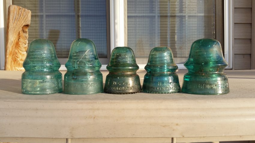 2 W, Brookfield signals, not sure if these are CD 133 or CD 134, one CREB. The skirt embossed one has a big milk stringer running from one side up an over the dome to the other side. 2 HG Co. 160s [050], one of which is very fizzy but has a 1 inch chip off the back skirt. Finally a Brookfield CD 162 [030]. |