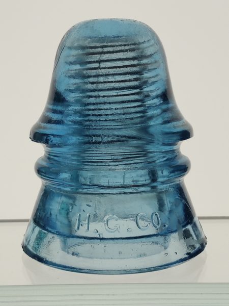 This is a very nice example of an insulator difficult to find in this condition. Very near mint with only a tiny nick and some hard to see micro nibbles along a small section of the sharp upper wire ridge. There's also a few of the same type nibbles in some small areas of the sharp outer base rim. I call them 'nibbles' because they're way too small to call chips or flakes. There's also a 3/4" "S" shaped crack inside the upper wire ridge that is in the rear. Beautiful color in great condition for this style. First email gets it shipped in the lower 48 or Canada for $250. No fee PayPal, money order, or check is fine. Check may have to clear if I don't know you. |