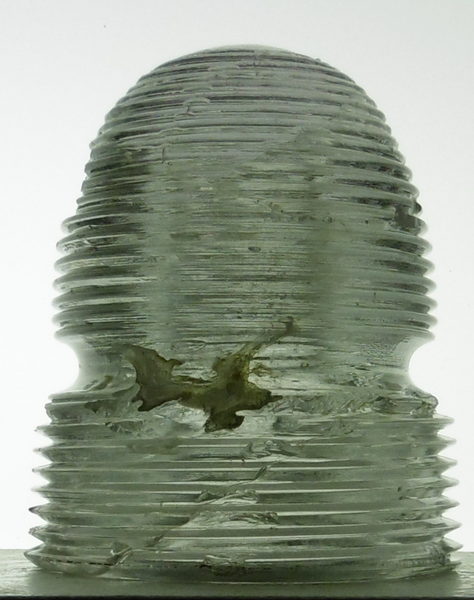 Just a small wedge missing from the crown on one side where the dome popped off from frost damage. This one came back together from [id=461465229;six shards found in the semi-frozen muck] (not including the smallest one that remained missing) and now has a tidy shelf to sit upon. Imagine that: a light grey horizontal Withycombe [110] No Embossing Canada CD 143 in the winter of 2016! Let's hope it's not the only one. I'd certainly go for one of those aqua ones with the high wire groove! |