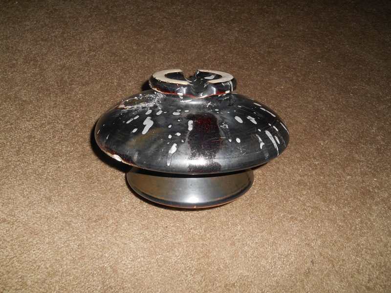 A 1920s 2-part OB multi recovered from a recently retired lattice tower. This was the middle insulator from the 23.9kV circuit that was below the two 66kV suspension lines. Looks like the painters got a bit careless with the aluminum paint - and which may have been a factor in the flashovers this poor thing suffered during its service life. The two outer insulators fared much better - one was another OB but almost a nice uniform tan but it was fairly tight to its pin (temps were dropping as it was close to sunset), and the other looks to be an unmarked Pinco 2-skirter. Went back the next day and ALL the mud was gone - blew a chance to get some Baum Patent disks and 1940s Lapp disks!!! |