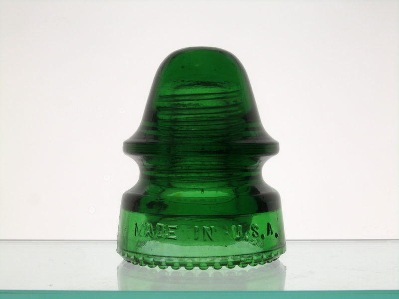 Here we have a CD 162 Hemingray-19 in 7-up green with the uncommon [130] embossing ("Hemingray" blotted out on the rear skirt). To date, it's the only color known for this embossing. It's so close to mint, but has one fisheye on the rear dome and a teeny bit of roughness around the base of the threads. Even the very fragile inner skirt is perfect. Asking $150 shipped and insured. Payment methods accepted: PayPal friends & family or personal check. If paying by personal check, funds must clear first before insulator ships. Thanks! |