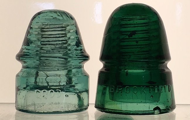 On left is a nice aqua 134 Good. VVNM and comes with one small dot below the "GOOD". $8 & $10 postage. On right is a 145 Brookfield in a very nice yellow green color. Comes with some small white rocks and is VVNM as well. "XO" on dome. $15 and $10 postage. In interested in the pair take them for $20 & $10 postage. USPS US addresses (Canada OK but postage will be at cost). PP fine but please use the no fee option otherwise check/MO is fine. Thx! |