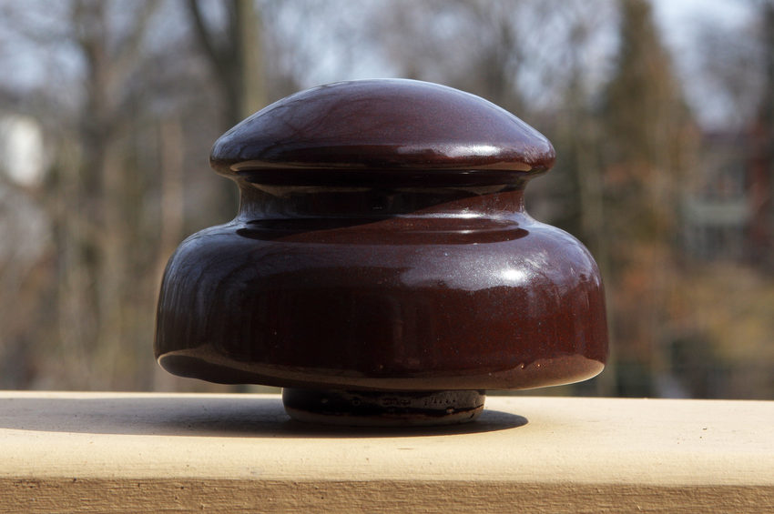 Some what uncommon triple petticoat insulator manufactured by Canadian Porcelain (CP), these were used on low voltage and sometimes phone lines in a 4 pin steel bracket set-up similar to a carrier circuit style bracket. I have a couple of these available, both have only minor damage, fleabite/peck on the base or some spots of roughness from being buried. Asking 12.00 USD+shipping (usually around $12 from Canada). PayPal no fee preferred. |