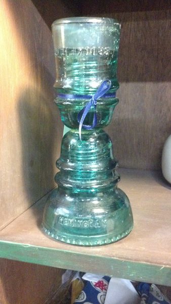 Found this candle holder made out of couple insulators . A BF 121 and a HEMINGRAY No 40 .