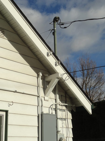 A sight not that uncommon around here 50 years ago, glass pintypes on J-hook pins used as strikes for a subscriber drop. And it wasn't unusual to see C.G.I.Co. ponies in use around here either. What is unusual is seeing these insulators used in a house strike application, and more unusual still, is that they were still there waiting to be found in 2016. Two identical, near colorless PT variant C.G.I.Co.'s left in place when the wires were taken down. The 94-year-old owner of the house said the house was built in 1915, coinciding perfectly with when these insulators were made. The pins are a Pierce or Hubbard "spring" type J-hook. |