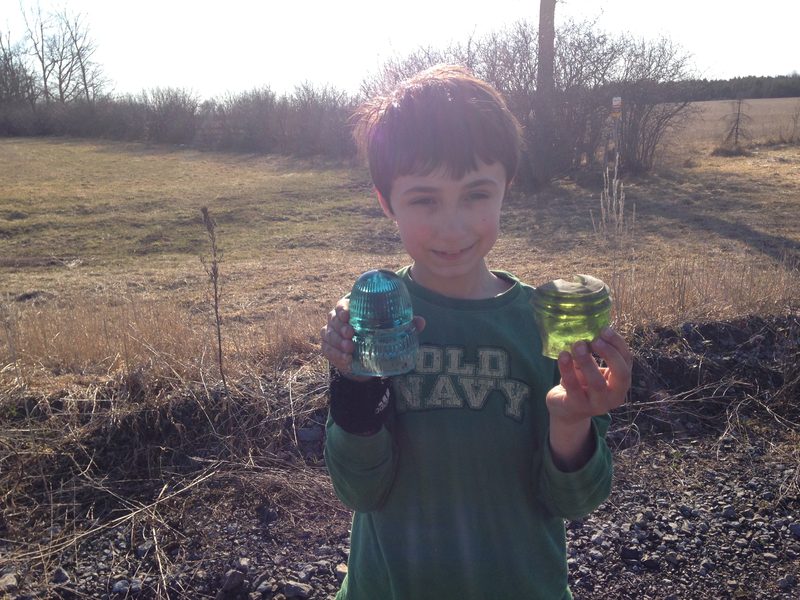 Saw part of a farm field ploughed which extended into the ROW on old Chalk River sub. Lots of broken spotted including these two. A vertical withycombe and a dark yellow green 136.4 Boston barrel. Too bad none were whole but it was pretty exciting. The withy was good on one side with a third of the skirt missing. |