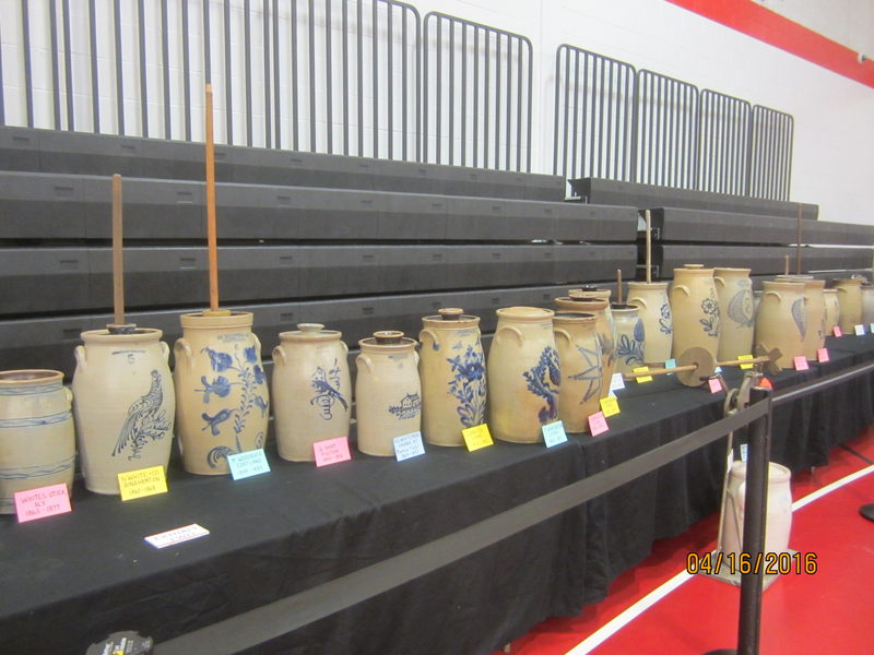 This was just one of the many excellent displays at the show. Decorated stoneware butter churns.