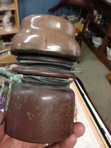 Found this piece in an antique shop close to 60 miles from home. Had a case of sticker shock but another collector at face book thought it was a good price. So good that I took a second trip back and purchased it for him. It starts its journey to it's new home today. You know who you are. Thanks for paying for two days gasoline expences in return!! |