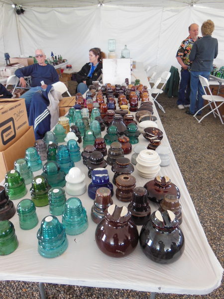 Pete Fortier's sales table. In the background to the left are Joe Clements and his daughter Stephanie; to the right are Tim & Joanne Wood