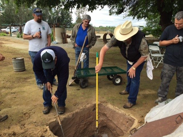 Here is Bill Rohde and friend working on arranging the meat. Justin Martin, Ron Yuhas and Dwayne Anthony look on.