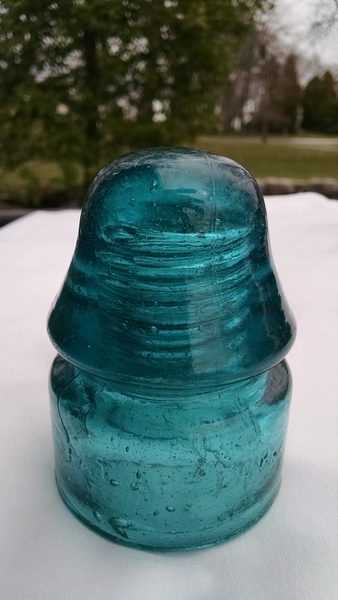 , blue with some bubbles though out, condition, a little flake off the f in For. Small chip on top wire groove, a couple nips below the 3 in rear. Displays great! For the condition $45 plus shipping.