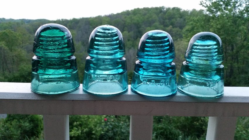 In this set of pieces I won at the auction [id=467675191], there is a dark green teal B with a shop number on the crown, 2 H G Cos, one aqua and one that might be called dark Hemingray blue perhaps, and a blue Star with some amber in it.
