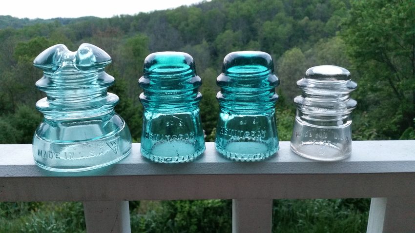 This group from the auction [id=467675191] has a light aqua Whitall-Tatum 214, two green aqua Hemingray 16s with perfect sharp drip points, and a clear Whitall-Tatum 107. There were a few more common pieces and half a dozen porcelain pieces, and 2 Duquesne tolls and 2 CD&P tolls. All were in very good shape except... [id=467677959] |