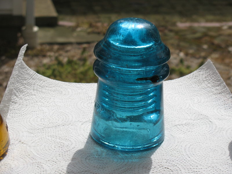 This is a really pretty and nice condition CD 125 WU5 Pat App For in Brookes Blue W/Milky swirls and an olive polliwog in the wire groove. It has a couple of ticks and scratches but is really close to mint. Beautiful Insulator. How about $100.00 plus shipping. PayPal okay or Money order. Thanks! |