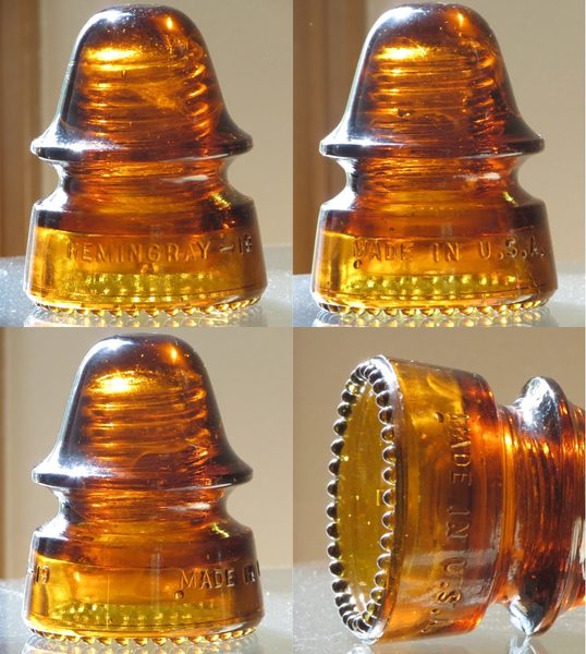 Dark Orange Amber HEMINGRAY-19 Here is the darker Orange Amber HEMINGRAY-19. The only damage to report is a "just bigger than a pinky nail sized flake" on the underside of the wire rim on the side. All else is VNM. As is sometimes common in these darker shades, it does include some rocks/gunk and nice milk (more milk than I can get to show in the photos). Take this one for $175 shipped to your doorstep anywhere in the USA. I prefer payment through PayPal gift option but I will accept other forms of payment. If you have any other questions or would like more photos, don't hesitate to message me. |