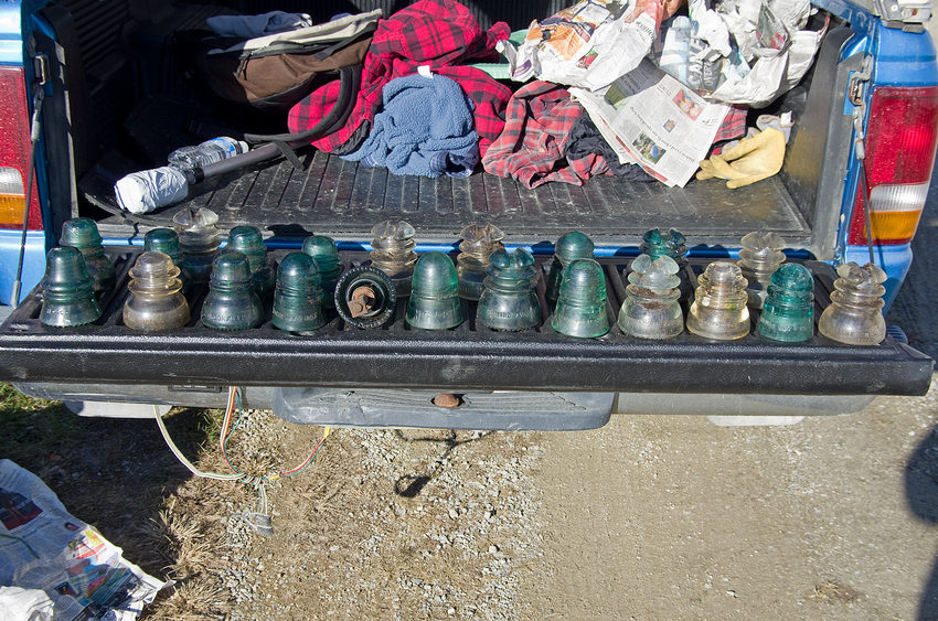 A small part of the insulators that were all found on the ground along the old main line Pennsy RR in northern Indiana. I picked this line in 1997 when they took the pole line down and left all the poles and insulators to lay where they fell. I grabbed all the older CREB beehives and Petticoat beehives and other decent stuff. Earlier in the early 70's I picked the better stuff. December 05, 2015. |